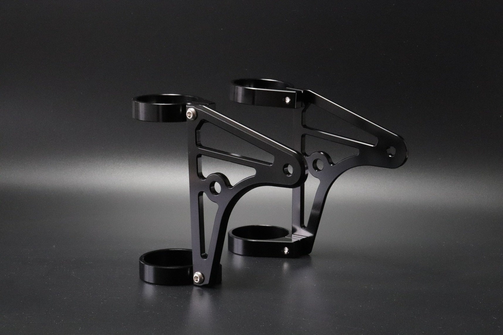 曲線と直線を組み合わせ、大きく肉抜き加工を程化した、アルミニウム削り出しのステー。